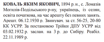 Реабілітований: Вінницькою облпрокуратурою 22.11.1989 Реабілітовані історією