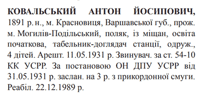 Реабілітований: Вінницькою облпрокуратурою 22.12.1989 Реабілітовані історією