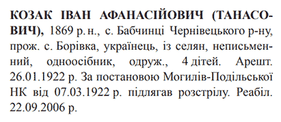 Реабілітований: 22.09.2006 Реабілітовані історією