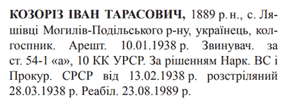 Іван Козоріз розстріляний 28.03.1938.
