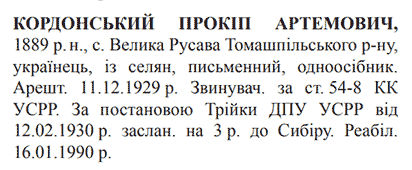 Реабілітований: 16.01.1990 Реабілітовані історією