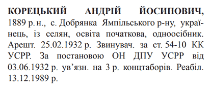 Реабілітований: 13.12.1989 Реабілітовані історією