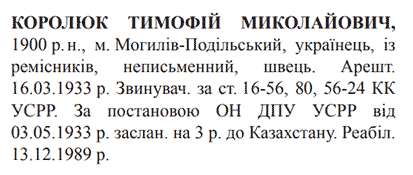 Реабілітований: 13.12.1989 Реабілітовані історією