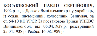 Реабілітований: 16.08.1989 Реабілітовані історією