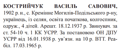 Реабілітований: 17.03.1965 Реабілітовані історією