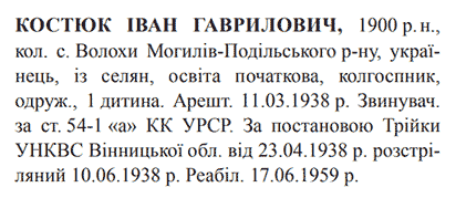 Іван Костюк розстріляний 10.06.1938.