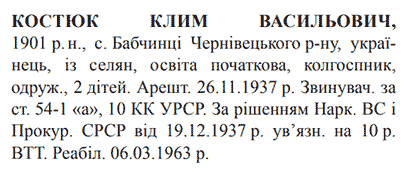 Реабілітований: 06.03.1963 Реабілітовані історією