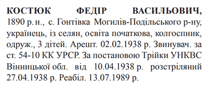 Реабілітований: 13.07.1989 р. Реабілітовані історією