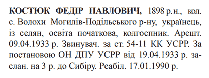 Реабілітований: 17.01.1990 Реабілітовані історією