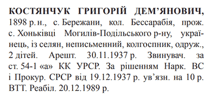 Реабілітований: 20.12.1989 Реабілітовані історією