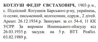 Реабілітований: 03.02.1989 Реабілітовані історією