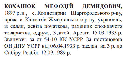 Реабілітований: 12.09.1989 Реабілітовані історією