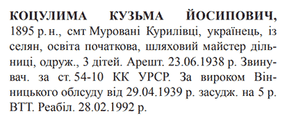 Реабілітований: 28.02.1992 Реабілітовані історією