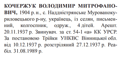 Реабілітований: 31.08.1989 Реабілітовані історією