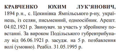 Реабілітований: 31.05.1995 Реабілітовані історією
