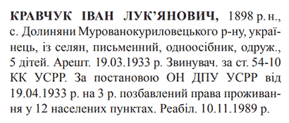 Реабілітований: 10.11.1989 Реабілітовані історією
