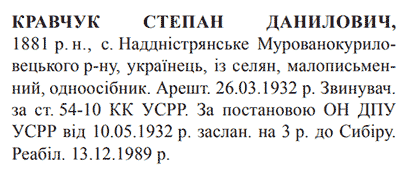 Реабілітований: 13.12.1989 Реабілітовані історією