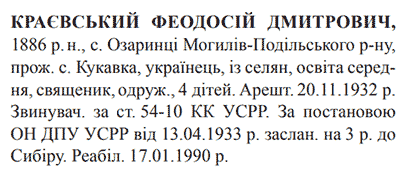 Реабілітований: 17.01.1990 Реабілітовані історією