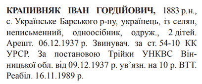 Реабілітований: 16.11.1989 Реабілітовані історією