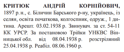 Реабілітований: 08.06.1960 Реабілітовані історією