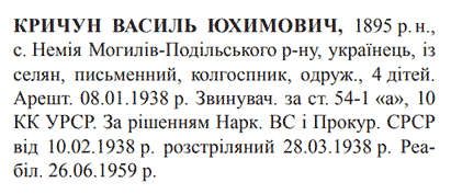 Василь Кричун розстріляний 28.03.1938.