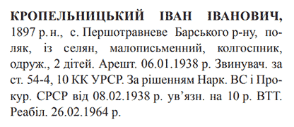 Реабілітований: 26.02.1964 Реабілітовані історією