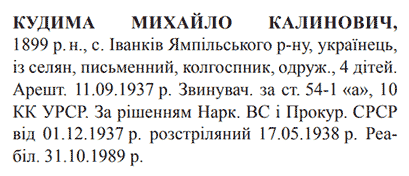 Михайло Кудима розстріляний 17.05.1938.