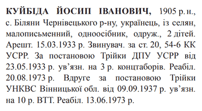 Реабілітований: 13.06.1973, 20.08.1973. Реабілітовані історією