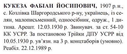 Реабілітований: 22.12.1989 Реабілітовані історією