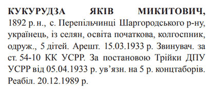 Реабілітований: 20.12.1989 Реабілітовані історією