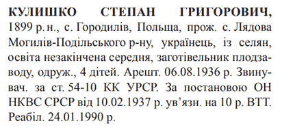 Реабілітований: 24.01.1990 Реабілітовані історією