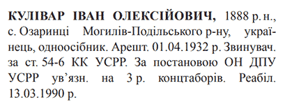Реабілітований: 13.03.1990 Реабілітовані історією