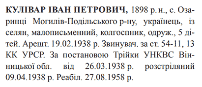 Іван Кулівар розстріляний 09.04.1938.