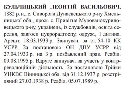 Леонтій Кульчицький розстріляний 27.03.1938.