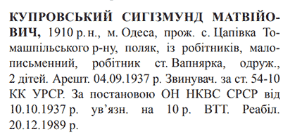 Реабілітований: 20.12.1989 Реабілітовані історією