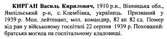 Учасник збройного конфлікту на р. Халхин-Гол. Помер від ран 22 серпня 1939 р.