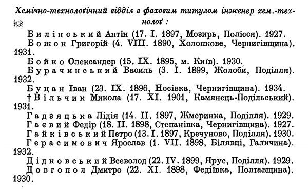 Список осіб, що в р.р. 1927—1936 закінчили Українську Господарську Академію з титулом інженера