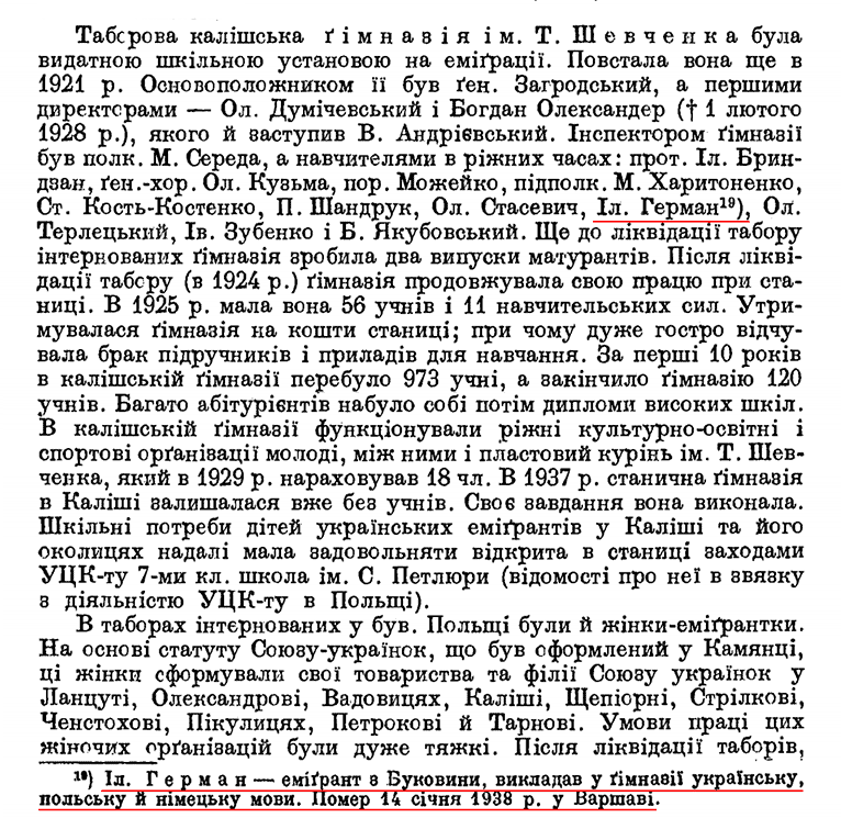Згадка про Ілька Германа у книзі "Українська еміграція" Симона Наріжного (1942 р., Прага)