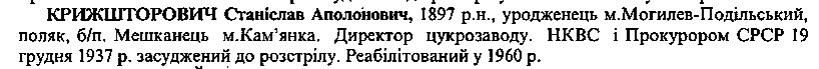 (Можливий варіант написання прізвища: Кржишторович, Кржиштофович) Реабілітовані історією