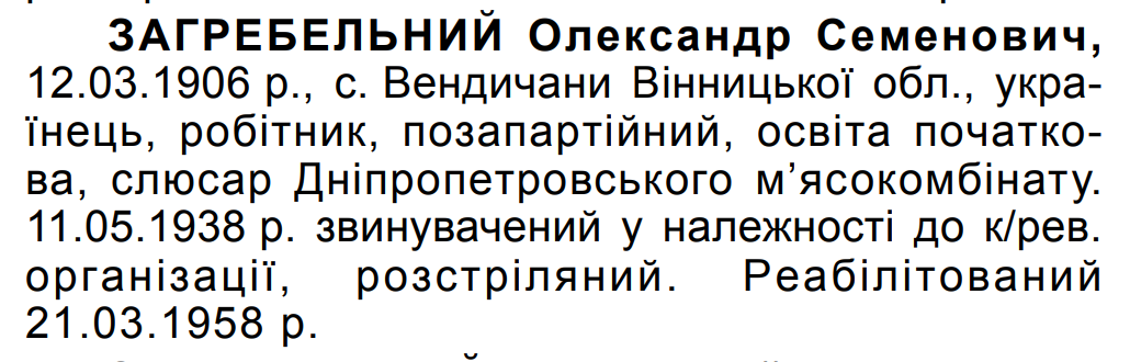 Реабілітований: 21.03.1958 Реабілітовані історією
