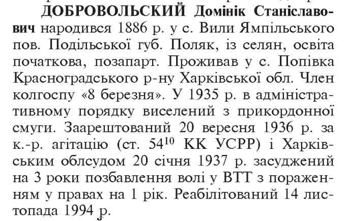 Реабілітований: 14.11.1994 р. Реабілітовані історією