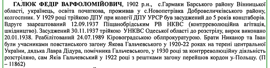 Федір Галюк розстріляний 20.01.1938 р.
