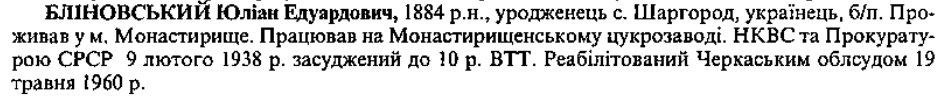 Реабілітований: Черкаським облсудом 19.05.1960 р. Реабілітовані історією