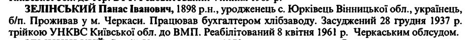 Панас Зелинський розстріляний 14.01.1938 р. у м. Київ.