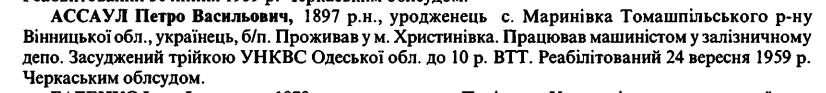 (Ассаул, Осаул, Осавул) Реабілітовані історією