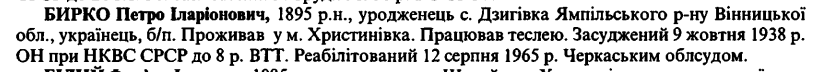 Реабілітований: Черкаським облсудом 12.08.1965 р. Реабілітовані історією