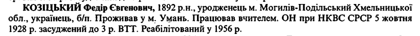 (Можливий варіант написання прізвища: Козіцький) Реабілітовані історією