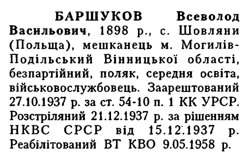 Всеволод Баршуков розстріляний 21.12.1937 р.