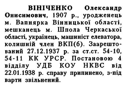 (Можливий варіант написання прізвища: Винниченко, Вініченко) Реабілітовані історією
