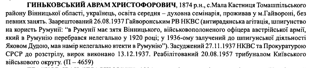 Аврам Гиньковський розстріляний 13.12.1937 р.